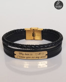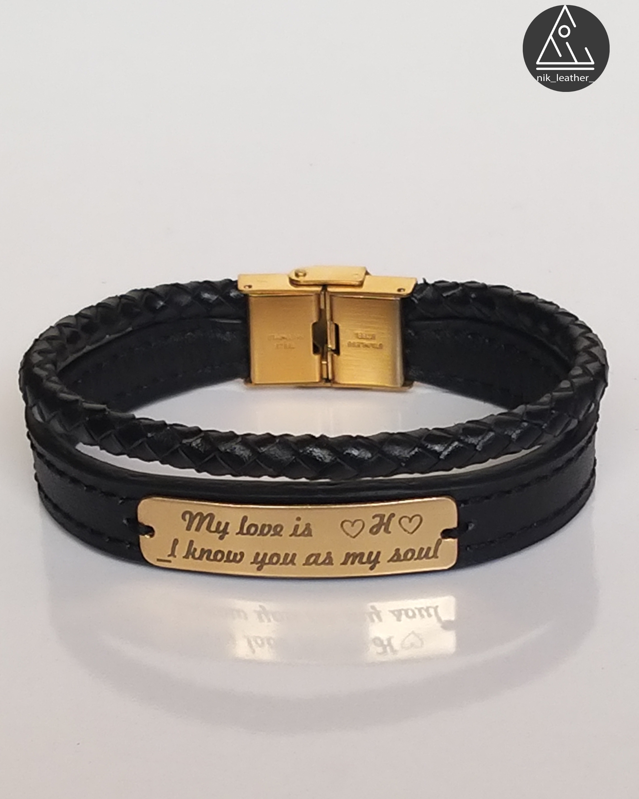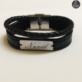 °توضیحات: پلاک و قفل رنگ ثابت، طرح و نوشته ی روی پلاک قابل تغییر هست، جنس بافت کنار دستبند چرم طبیعی