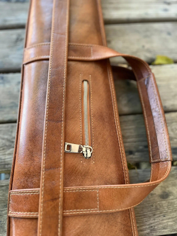این مدل کیف مناسب تمام اسلحه های شکاری هست(برنو، ساچمه زنی) ساخته شده با چرم بوفالو قسمت پشت کیف یه زیپ کار شده برای قرار گیری جواز سلاح قابل سفارش در طرح و رنگ دلخواه شما